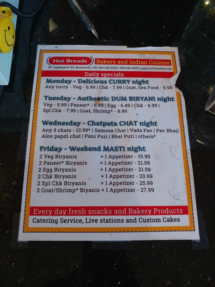 Hot Breads, located in Monroe Township, NJ, is a hidden gem for Indian cuisine. Offering a wide range of vegetarian and vegan options, as well as accommodating various dietary needs, this bakery and buffet is a must-try. Their Chef's Special Chicken Fry and Hyderabadi Special Dum Biryani are standout dishes that keep customers coming back for more. The cozy atmosphere and attentive service make dining here a delightful experience. The reviews rave about the flavorful dishes, with favorites like the Chicken Tikka Masala and Butter Paneer receiving high praise. Whether you're looking for a quick takeout option or a sit-down meal, Hot Breads has something for everyone. With its authentic flavors and generous portions, this Asian-owned establishment is a top choice for those craving delicious Indian food.
